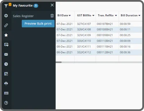 Gofrugal’s POS analytics software gives you the flexibility to customize every aspect of reports based on your business requirements. Add frequently viewed reports under ‘My Favorites’ for quick and easy access, powered by POS BI.