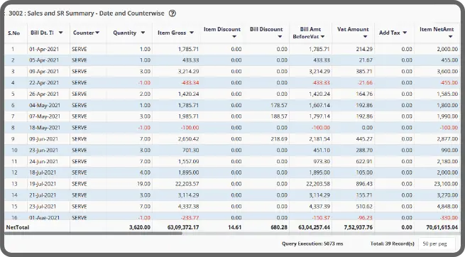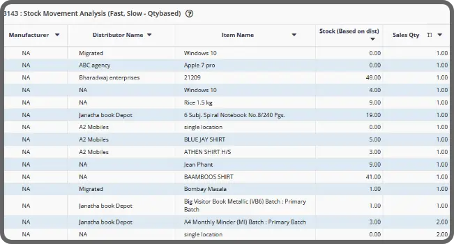 Track your inventory with attention to every detail using the stock and sales POS report, stock analysis - age-wise, stock movement analysis, and product enquiry details, and enjoy efficient inventory management. By using retail POS analytics, you can optimize your inventory levels, minimize costs, and maximize profitability in your retail operations.