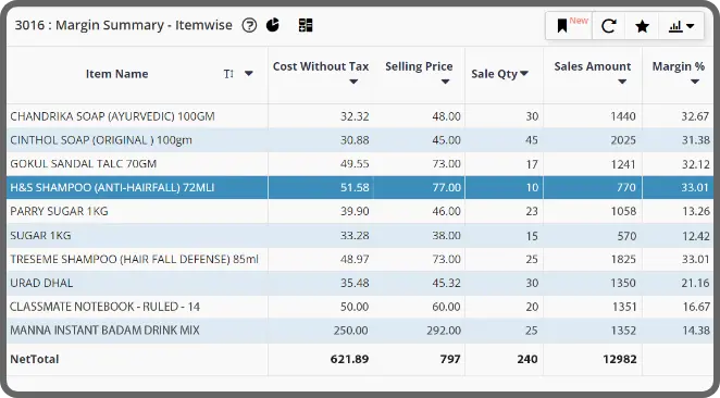 Optimize profitability by analyzing margin summary reports for itemwise, datewise, customer-wise, category-wise, and customer bill-wise for making strategic decisions with ease.