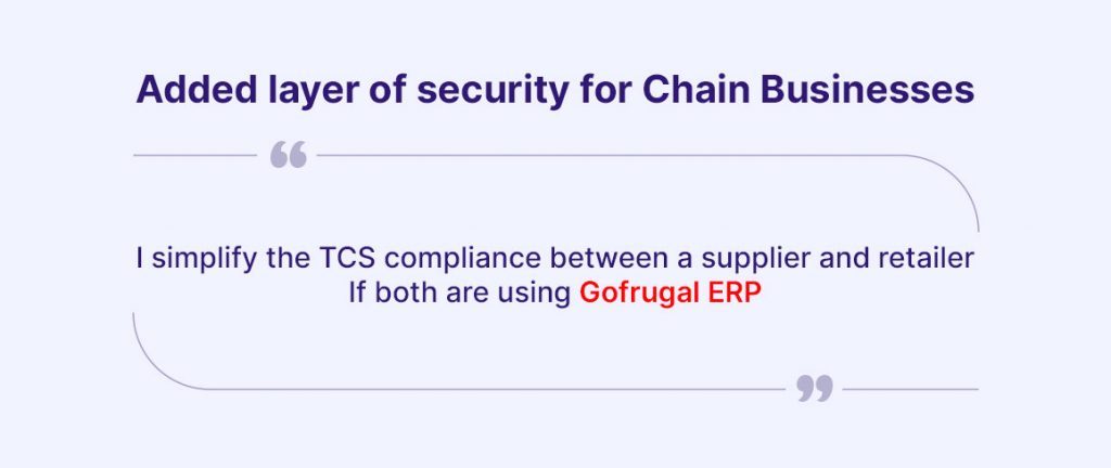 One major hassle that a supplier and retailer face is TCS compliance. If it’s not streamlined, then it becomes difficult for the supplier as he pays the extra money from his pockets. But here’s the good news for Distributors and Retailers who use Gofrugal ERP. From this release, while making sales bill in GoFrugal ManageEasy, the TCS amount will be automatically reflected in the purchase screen of GoFrugal RetailEasy.