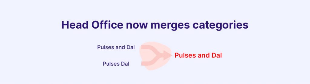 Head office solution (HO), whose outlets are powered by RetailEasy, can use the category merge option. The outlets will have different categories for a product, and the master management team can have a separate category for the same product. In such a situation, merging sales information, inventory reports, and other transaction reports can be a Herculean task.