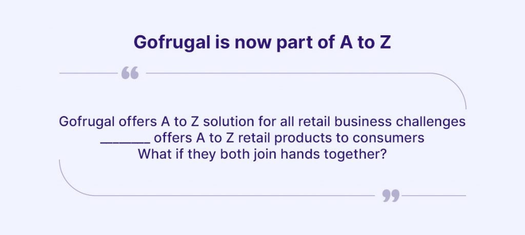 Amazon offers retailers a marketplace to sell A to Z products, and Gofrugal provides A to Z solutions for retail business challenges from Kirana to an enterprise. With this integration, we have become the first ERP vendor integrated directly with Amazon.