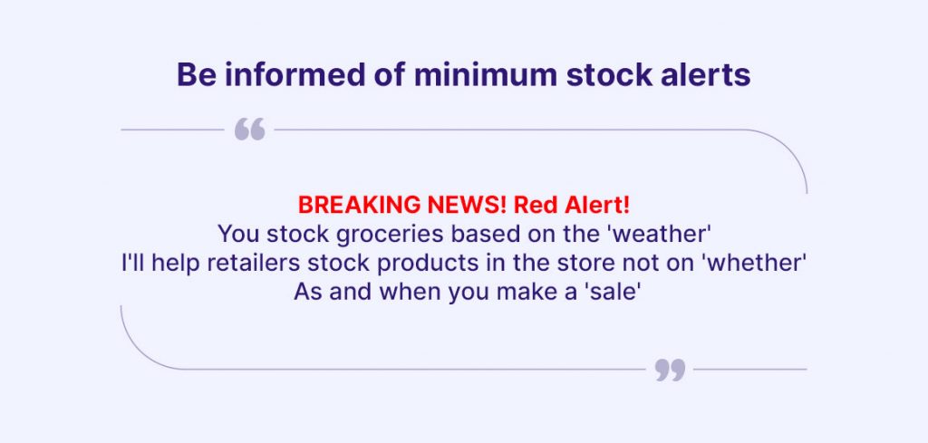 Also, your employees at the billing counter can verify the stock report easily and purchase stock based on the report at the earliest opportunity. Basically, we have eased the decision-making process for your purchase. And, you will not lose customers due to uninformed out-of-stocks!
