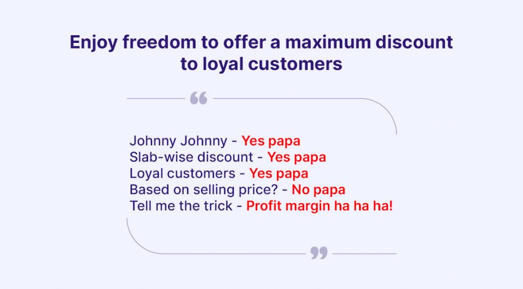 7) Enjoy the freedom to offer maximum discount to loyal customers