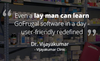 “ We had a very good pre-sales experience and got timely response for our queries. We wanted to experience the same in our business. The implementation just took a day and we started billing from the next day. All the embarrassment we faced for decades to give our customers the bill and serve them quickly came to an end. Now we are able to bill 4 times faster and both our pharmacists learned the software with ease. Able to function 50% more effective with GOFRUGAL’s pharmacy billing software now & find it easy to maintain our stocks accurately “says Dr.Vijayakumar