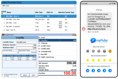 Repeat your customers and new buyers to your store with loyalty programs based on points or amounts with membership cards for your customers. Get the power to monitor, control and protect your margins while running offers by deciding your equivalent redemption value and offering gift vouchers