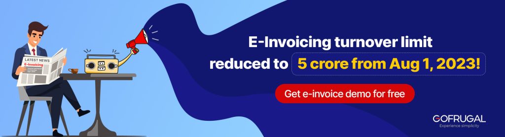As per the new announcement of the Central Board of Indirect Taxes (CBIC) Notification No. 10/2023, on e-invoicing in GST, the e-invoice applicability limit has been reduced from 10 crores to 5 crores. This e-invoice applicability limit came into effect from 1st August 2023 for the aggregate turnover of the business in any of the financial years starting 2017-18 till the last financial year. Previously, from 1st October 2022, the e-invoice was applicable only for businesses whose turnover exceeds 10 crores.