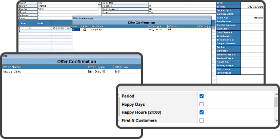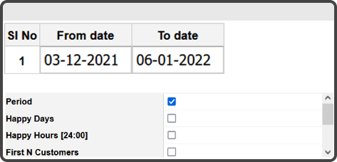 Configure offers based on happy days and hours a day for your customers to avail offers on that particular days and hours of the day and get continuous footfall.